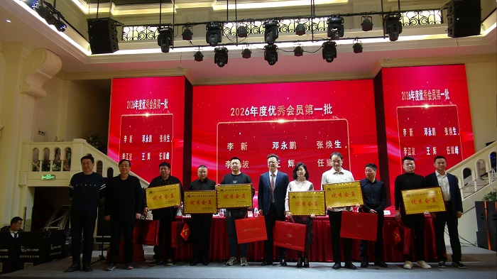 商会的近百名会员参加了商会三届三次会员大会。大会首先由会长张正作了2025年度商会工作情况报告。由监事长何星光作了2025年度商会财务情况及监事会审核情况的报告。接着,大会通过了“关于新增商会领导成员及商会会员的决议”、“关于表彰商会2025年度优秀会员的决议”,并进行了授牌和表彰,有2名优秀会员代表(李新、刘厚银)在大会上做了精彩的分享发言。