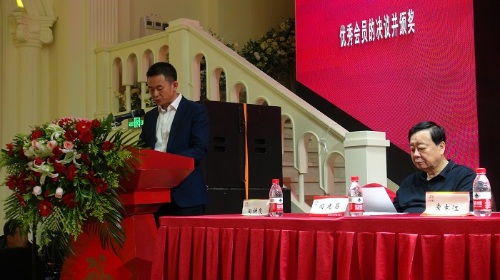 克拉玛依市陕西商会党支部书记、执行副会长邬仁平宣读表彰决议(草案)(下);